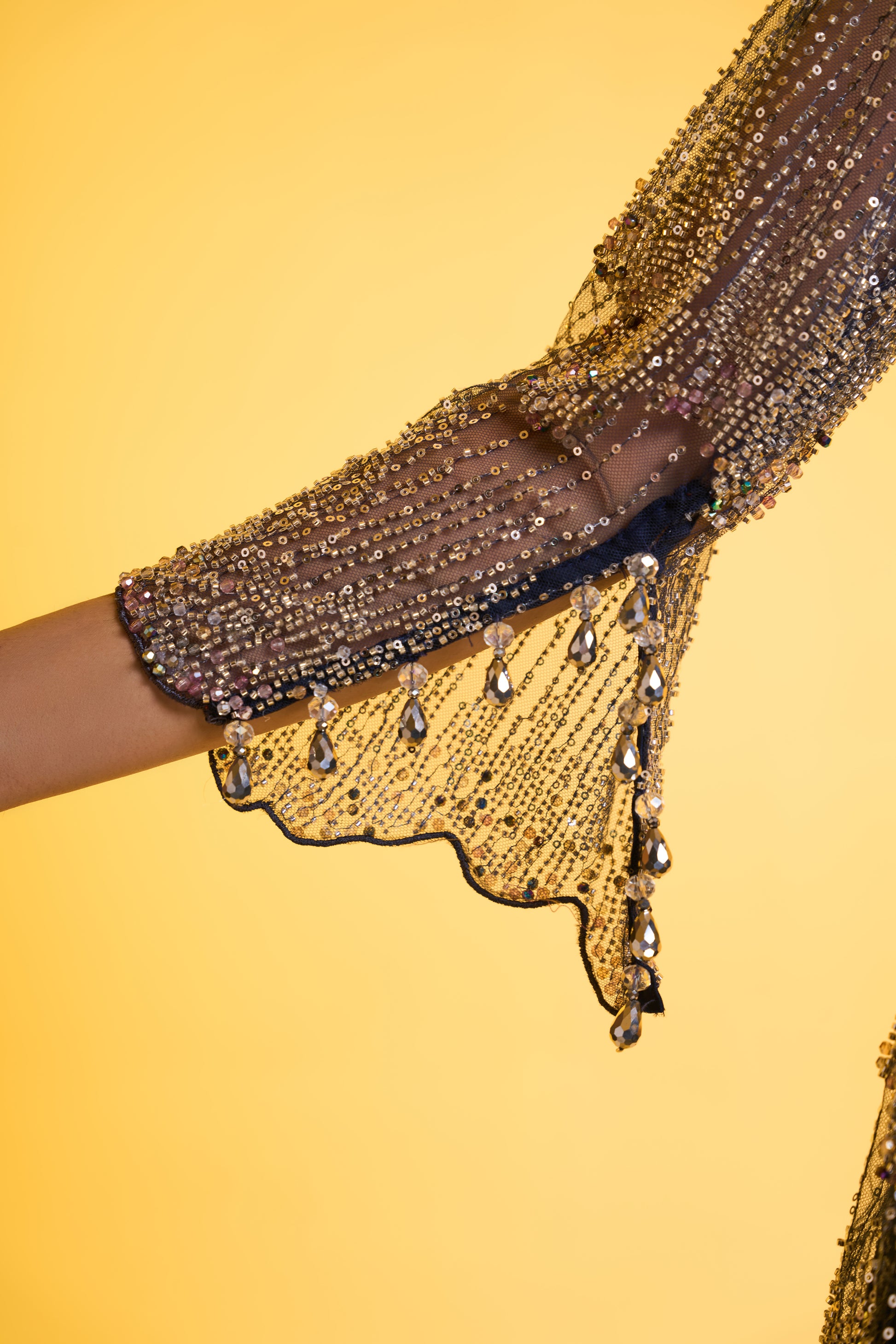 Color: Blue base Fabric with silver tone embroideries.