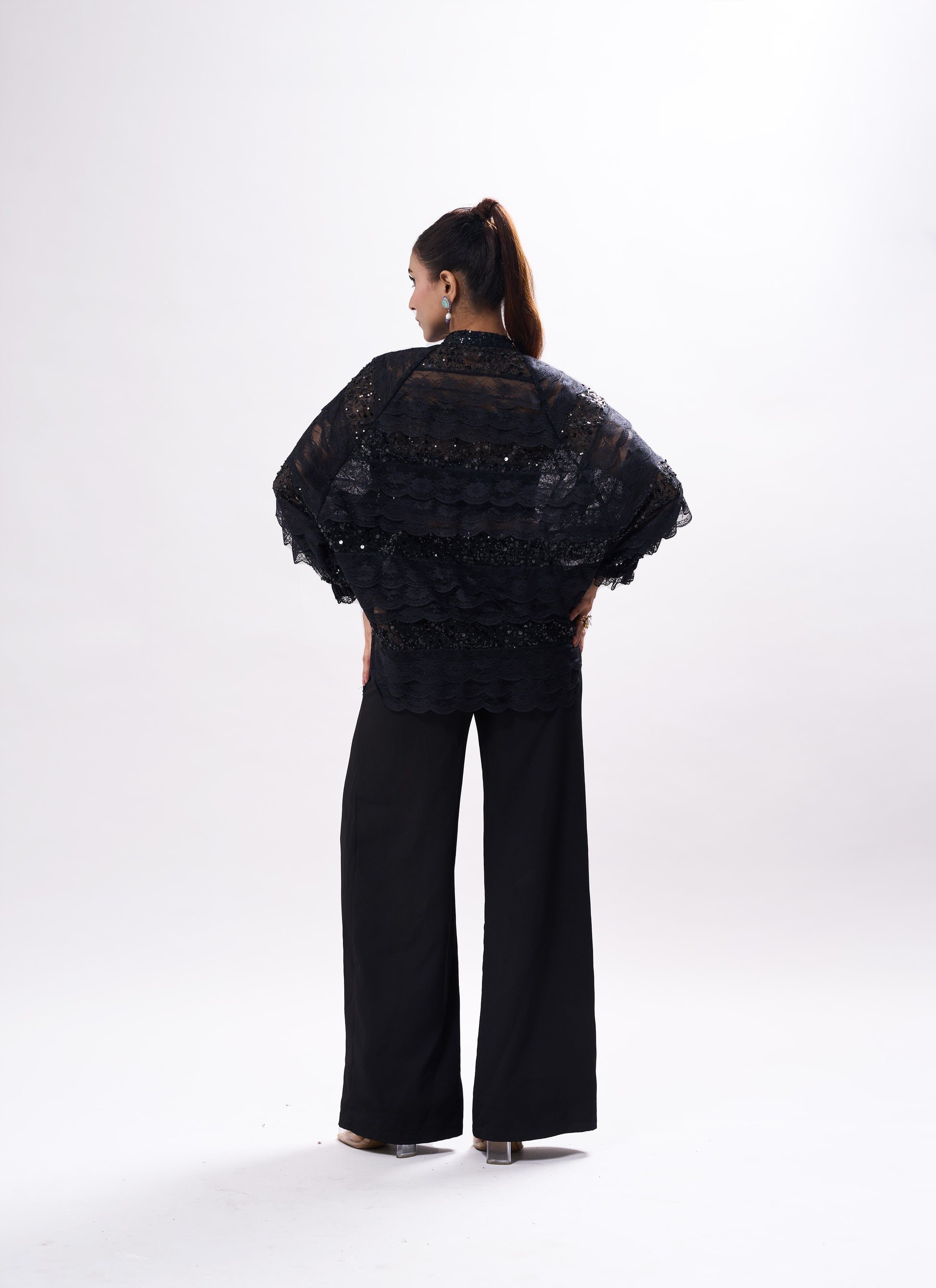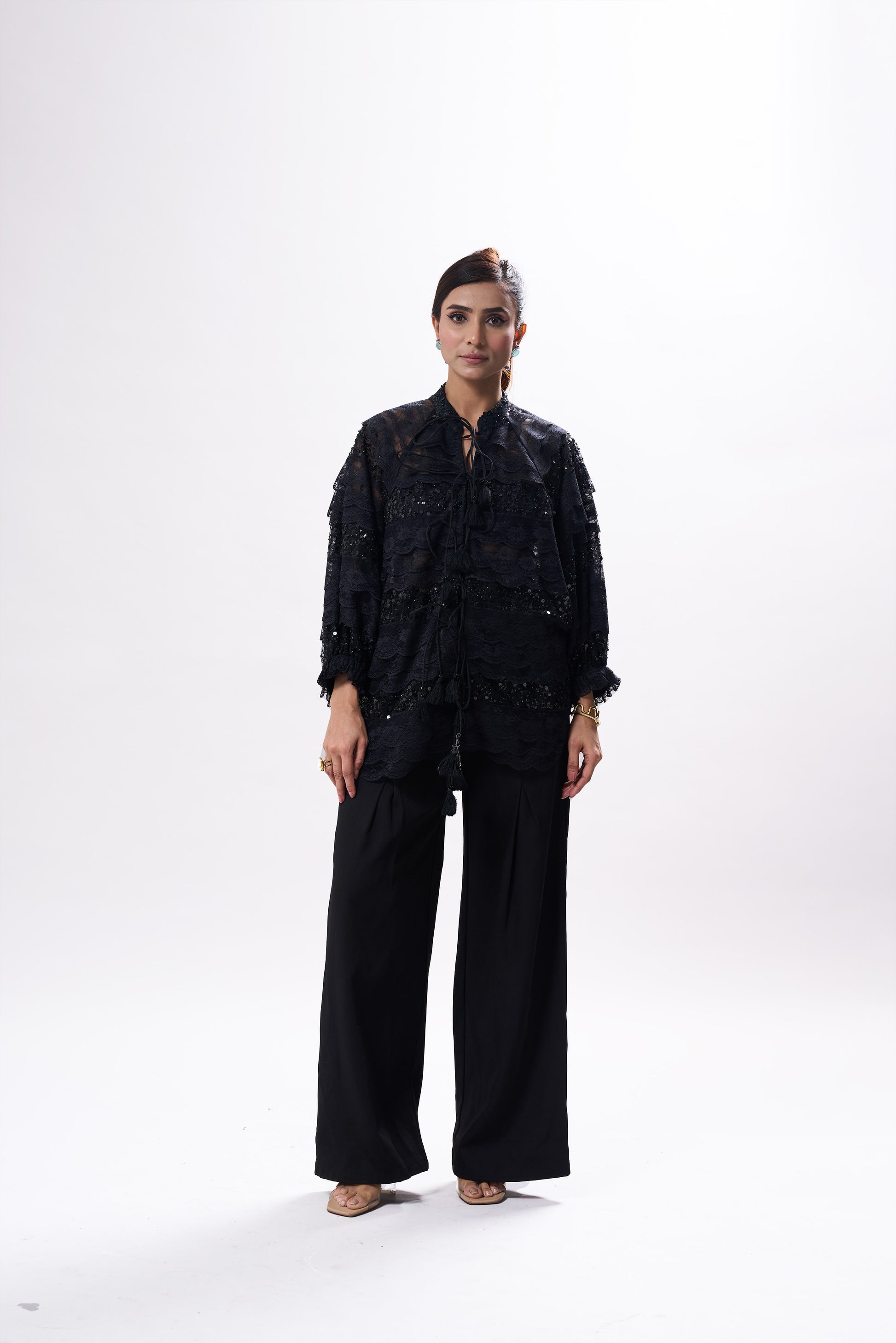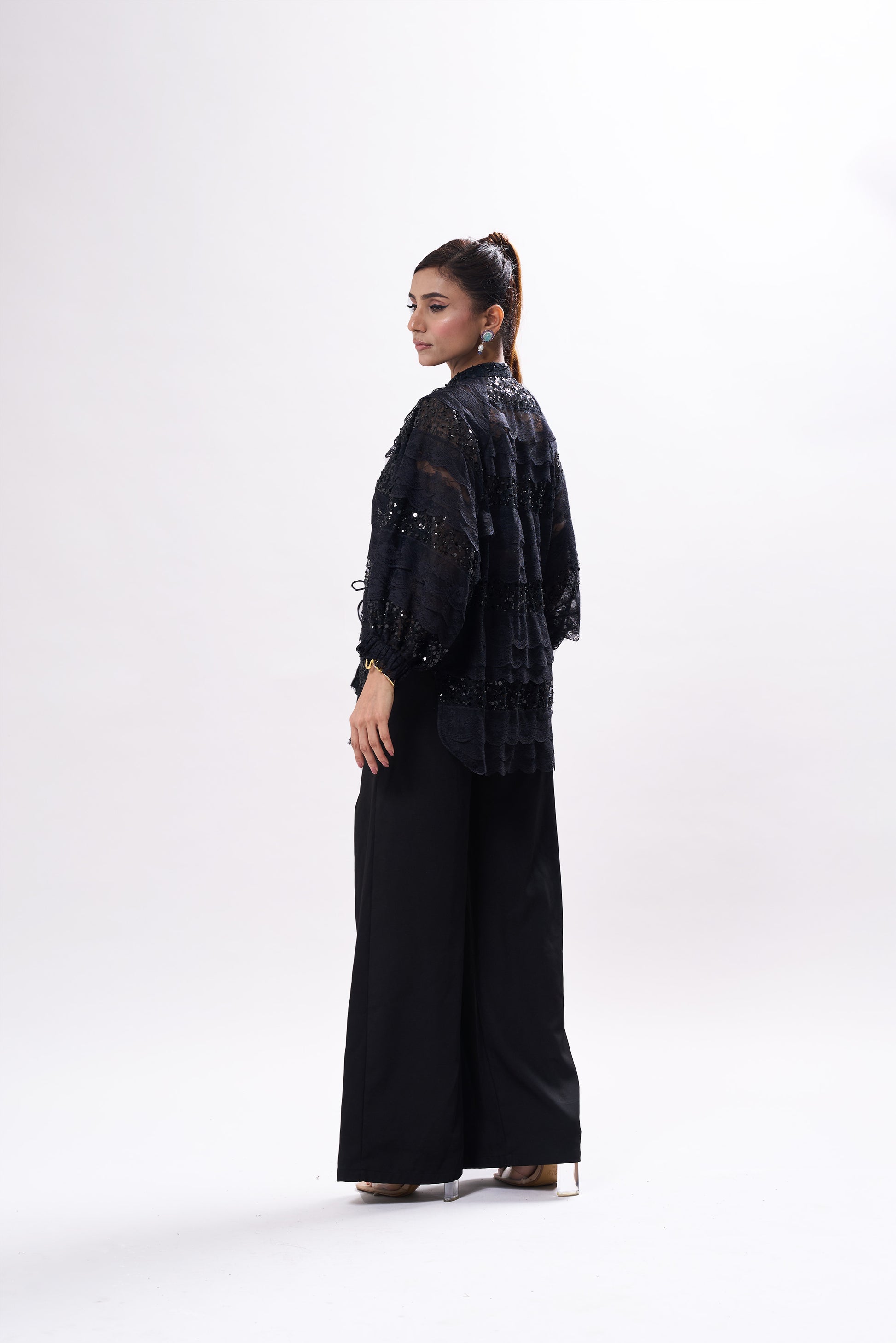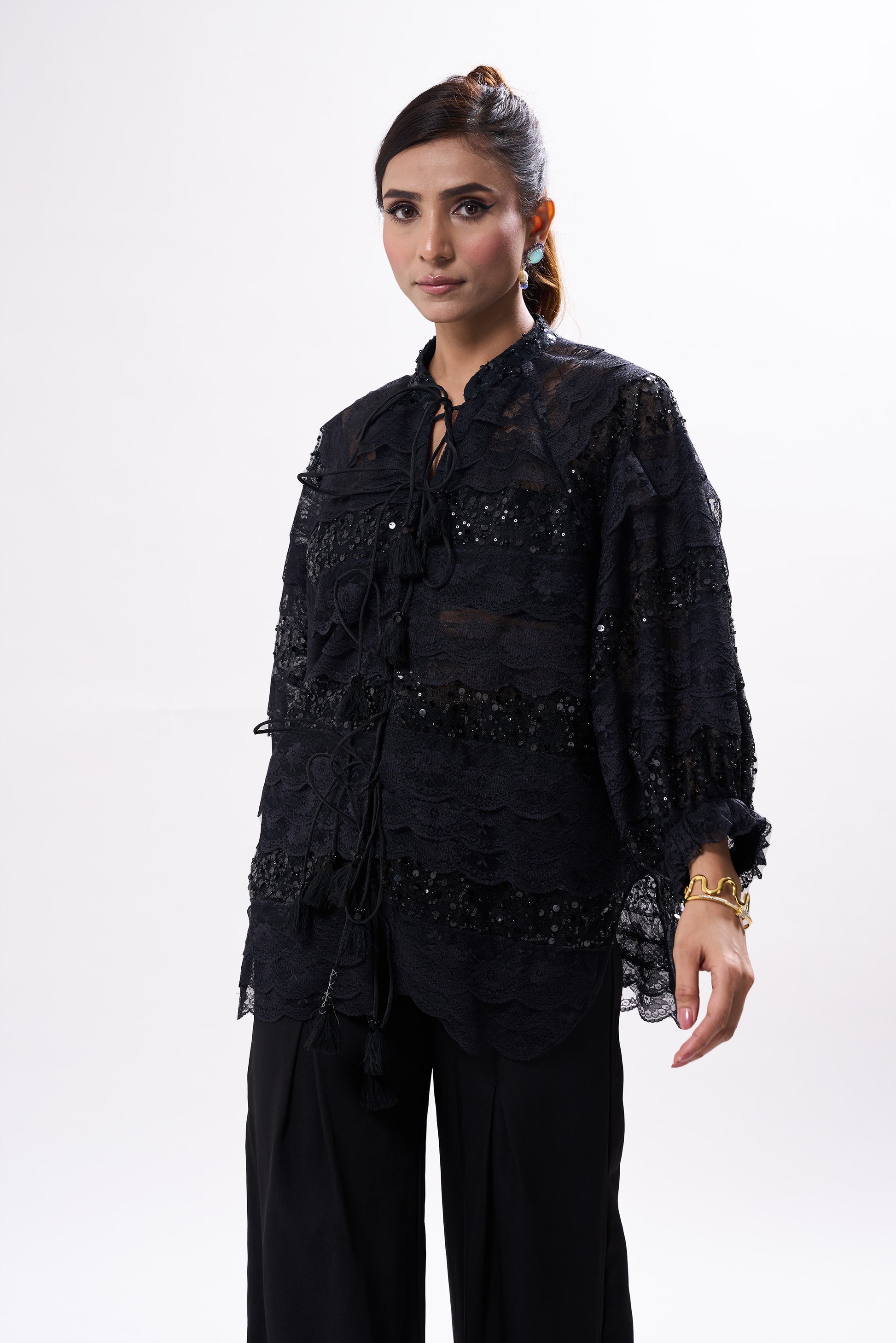 • Fabric: Black Lace with Self Black Sequin Hand Embroidery